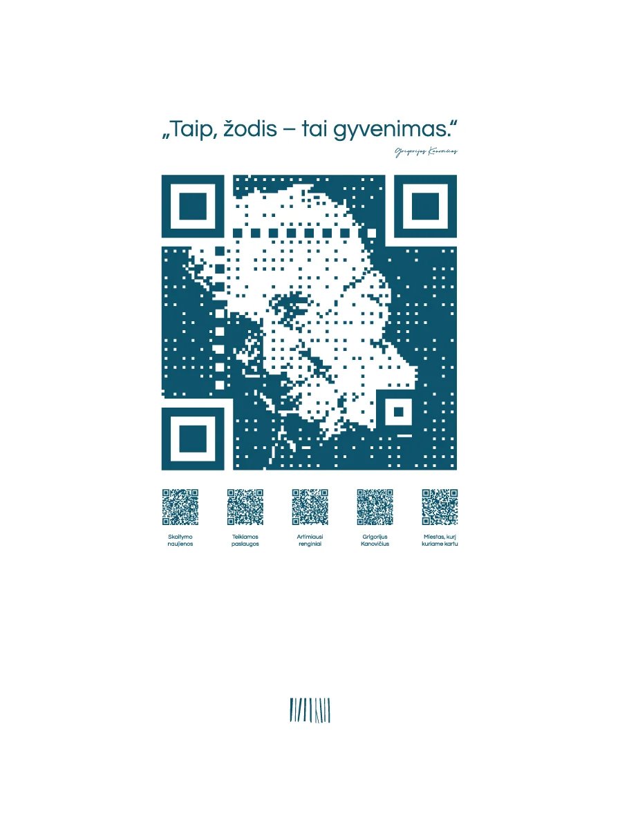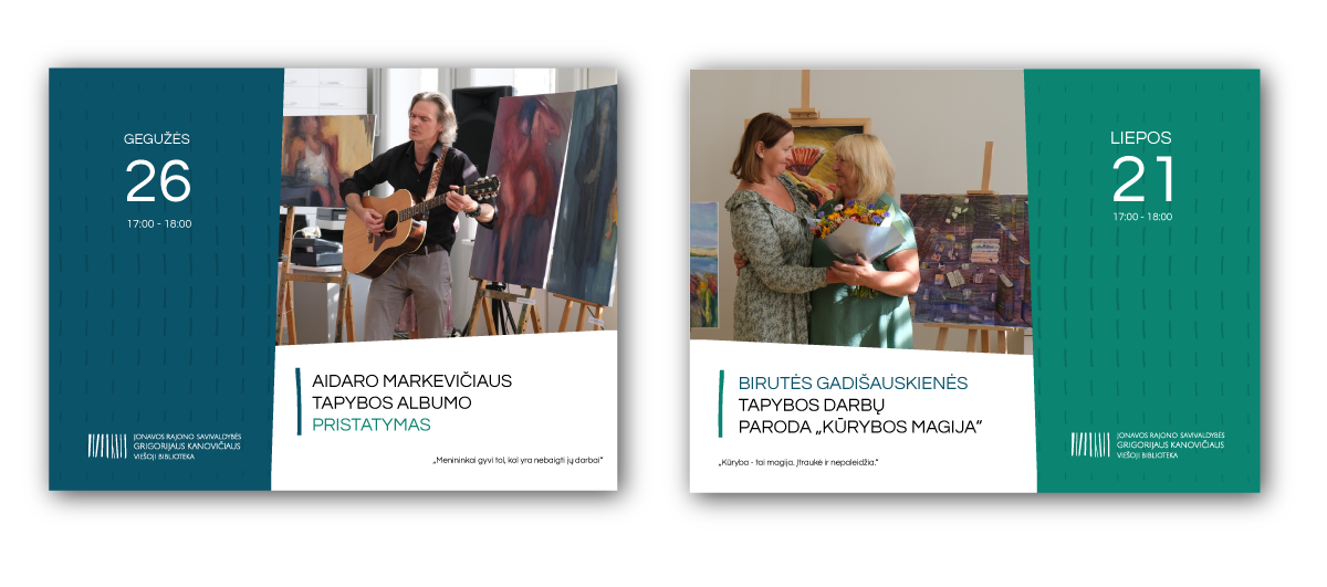 Projekto iniciavimo priežastis: 2023 Jonavos viešajai bibliotekai suteikus rašytojo Grigorijaus Kanovičiaus vardą, reikėjo ne tik naujo logotipo. Užduotis – sukurti vieningą, šiuolaikišką identitetą, kuris remtųsi rašytojo gyvenimo laikysena ir vertybėmis, būtų priimtinas įvairaus amžiaus bendruomenei, lengvai taikomas kasdienėje komunikacijoje ir padėtų atsisakyti stereotipo, kad biblioteka – statiška, „akademiškai nuobodi“ erdvė.