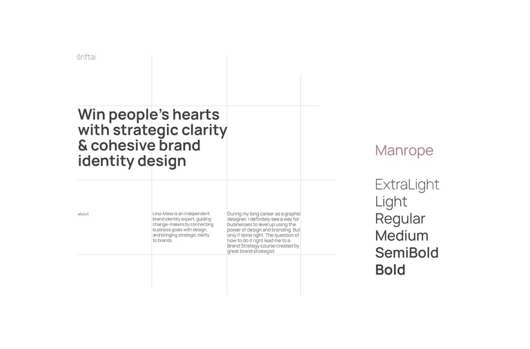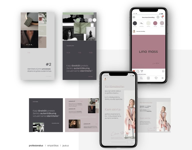Identitetas papildytas Lina Mass parašu. Tikslas: asmeniškumas, asmeninio brendo kūrimo išraiška, patikimumas, kokybės garantija savo vardu.